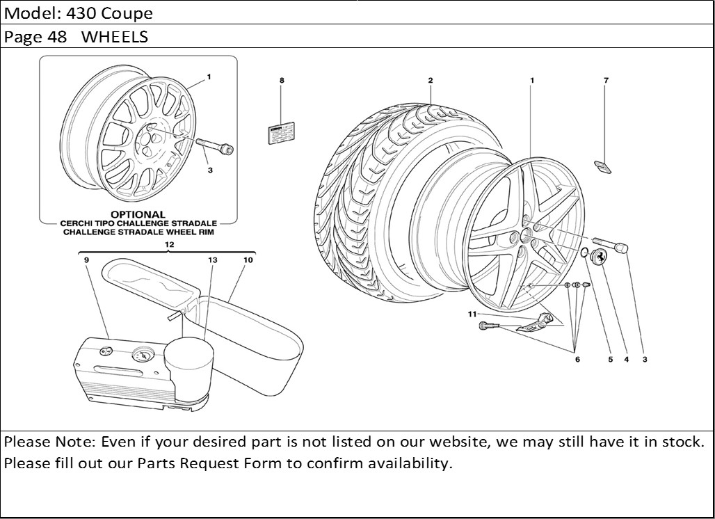 | 1 | 233537 | REAR WHEEL RIM -Optional- -Ball polished- -No for TPMS equipped cars- -Challenge type rims- | 2 |
