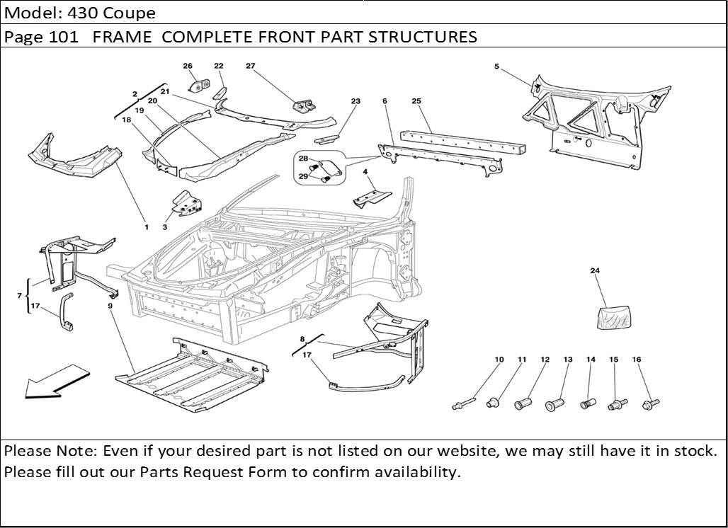 430 Coupe Page 101 FRAME COMPLETE FRONT PART STRUCTURES