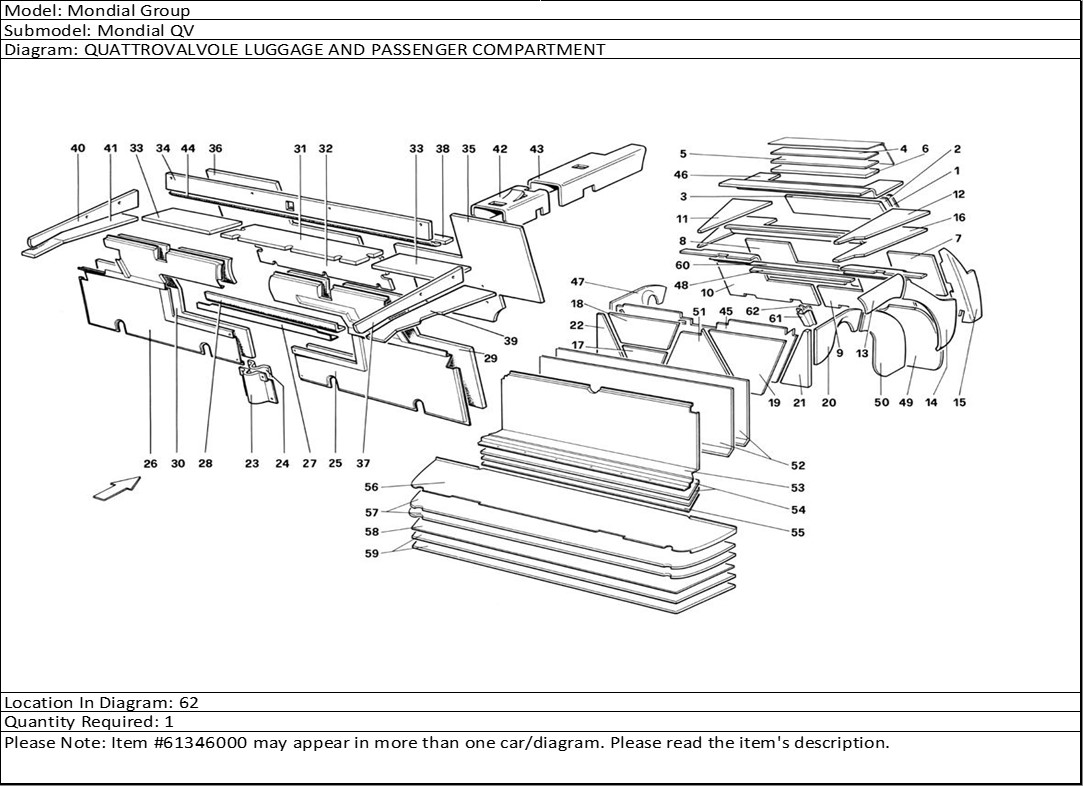 Ferrari Part 61346000 INSULATION. Click on any diagrams below to see particular uses of this Ferrari part number: