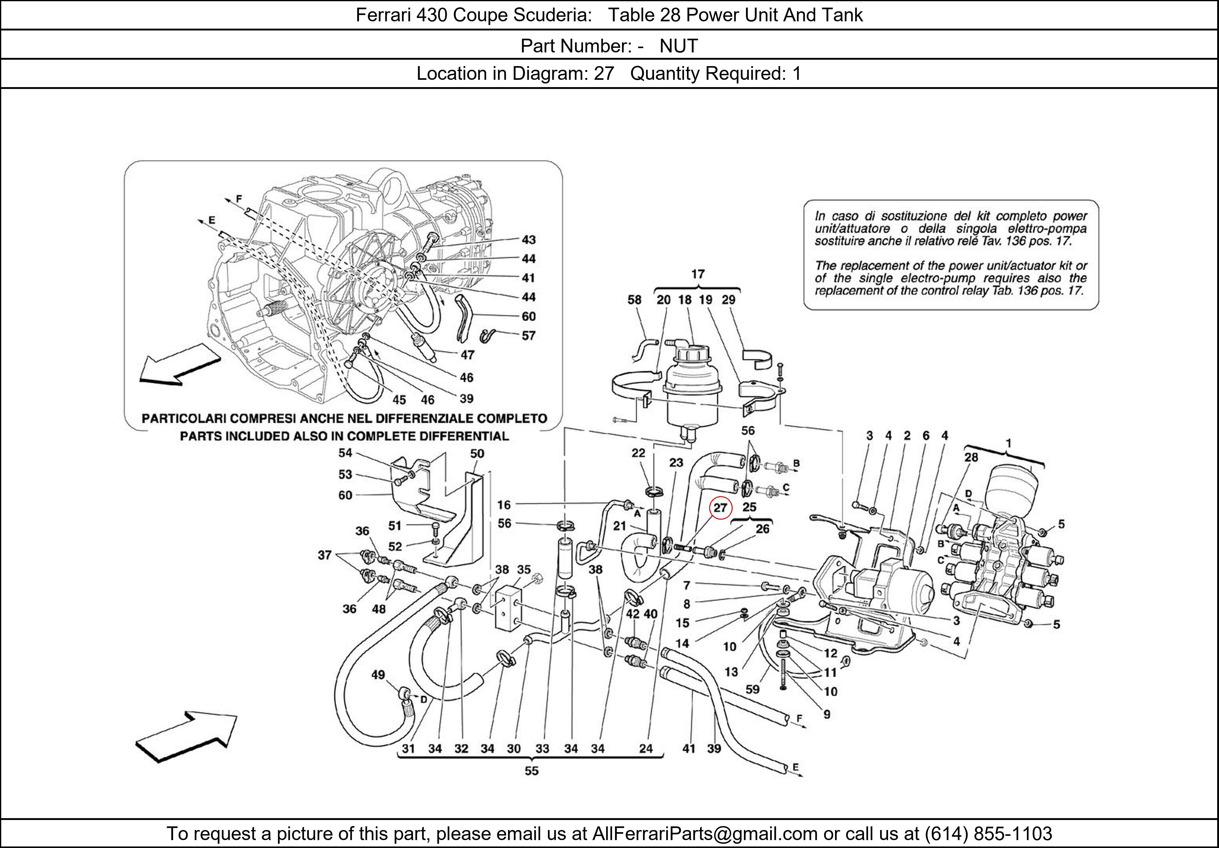 Ferrari Part Number -, NUT shown here as used in Ferrari 430 Coupe Scuderia Table 28 Power Unit And Tank. Location in Diagram: 27. Required Quantity: 1