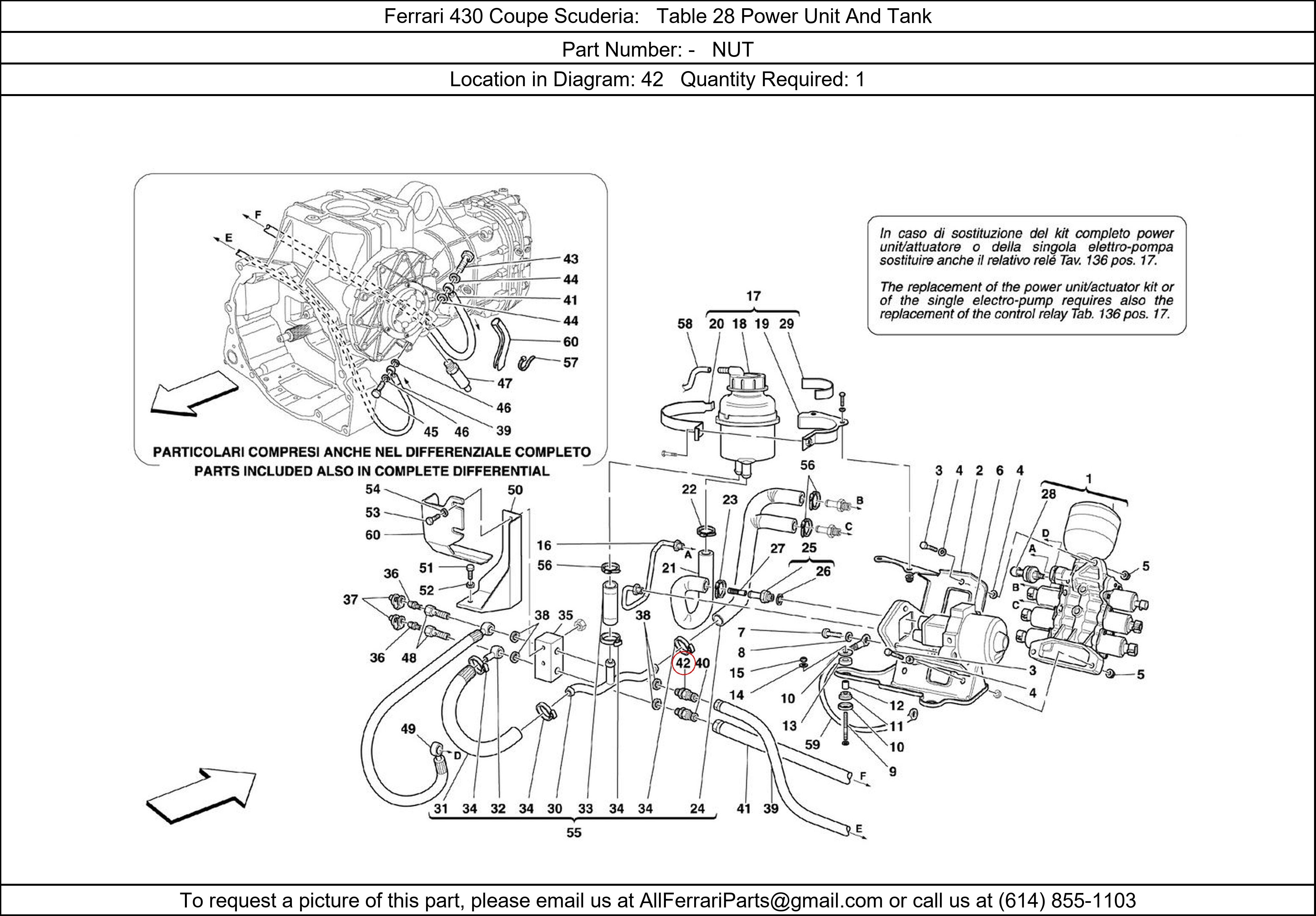 Ferrari Part Number -, NUT shown here as used in Ferrari 430 Coupe Scuderia Table 28 Power Unit And Tank. Location in Diagram: 42. Required Quantity: 1