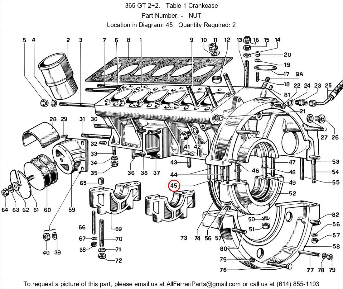 Ferrari Part Number -, NUT shown here as used in 365 GT 2+2 Table 1 Crankcase. Location in Diagram: 45. Required Quantity: 2