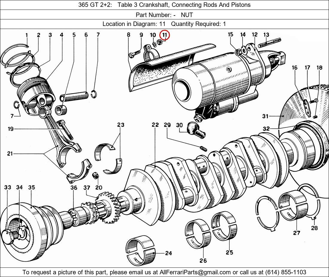 Ferrari Part Number -, NUT shown here as used in 365 GT 2+2 Table 3 Crankshaft, Connecting Rods And Pistons. Location in Diagram: 11. Required Quantity: 1
