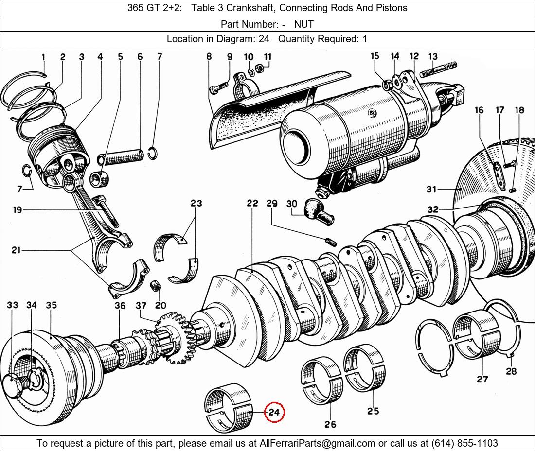 Ferrari Part Number -, NUT shown here as used in 365 GT 2+2 Table 3 Crankshaft, Connecting Rods And Pistons. Location in Diagram: 24. Required Quantity: 1