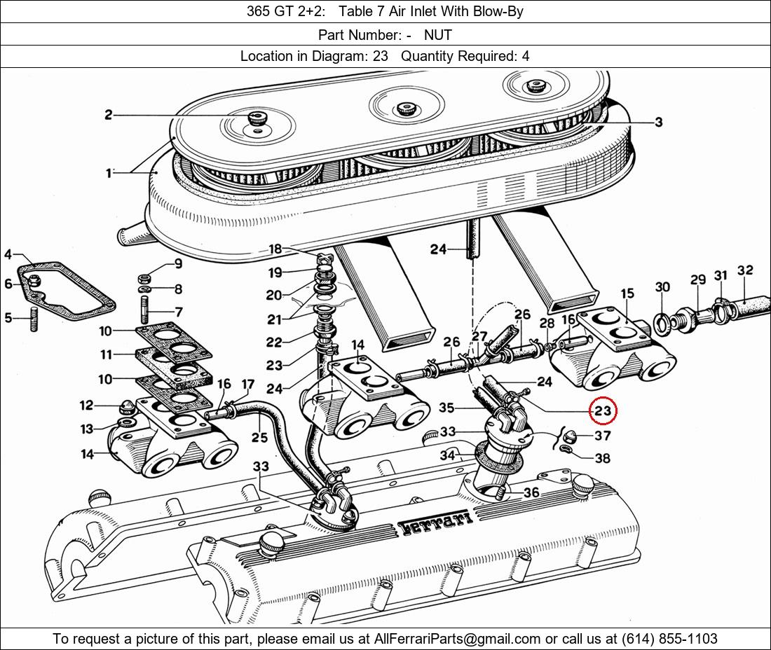 Ferrari Part Number -, NUT shown here as used in 365 GT 2+2 Table 7 Air Inlet With Blow-By. Location in Diagram: 23. Required Quantity: 4