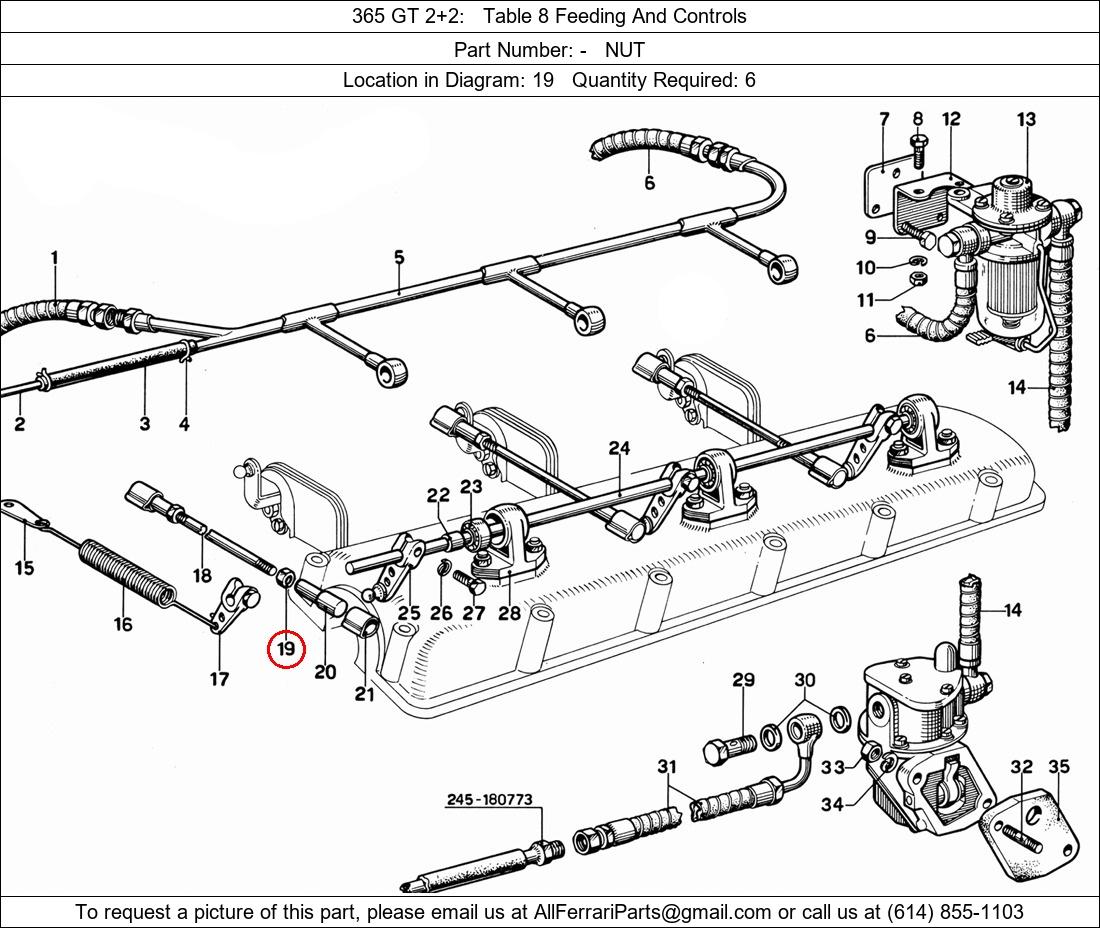 Ferrari Part Number -, NUT shown here as used in 365 GT 2+2 Table 8 Feeding And Controls. Location in Diagram: 19. Required Quantity: 6