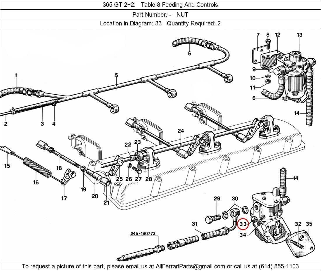 Ferrari Part Number -, NUT shown here as used in 365 GT 2+2 Table 8 Feeding And Controls. Location in Diagram: 33. Required Quantity: 2