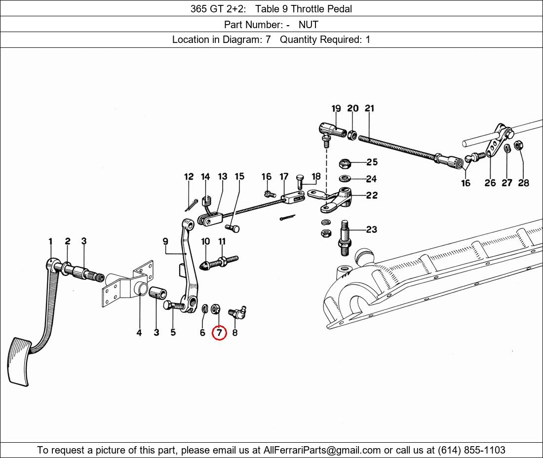 Ferrari Part Number -, NUT shown here as used in 365 GT 2+2 Table 9 Throttle Pedal. Location in Diagram: 7. Required Quantity: 1