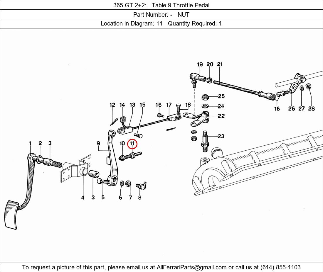 Ferrari Part Number -, NUT shown here as used in 365 GT 2+2 Table 9 Throttle Pedal. Location in Diagram: 11. Required Quantity: 1