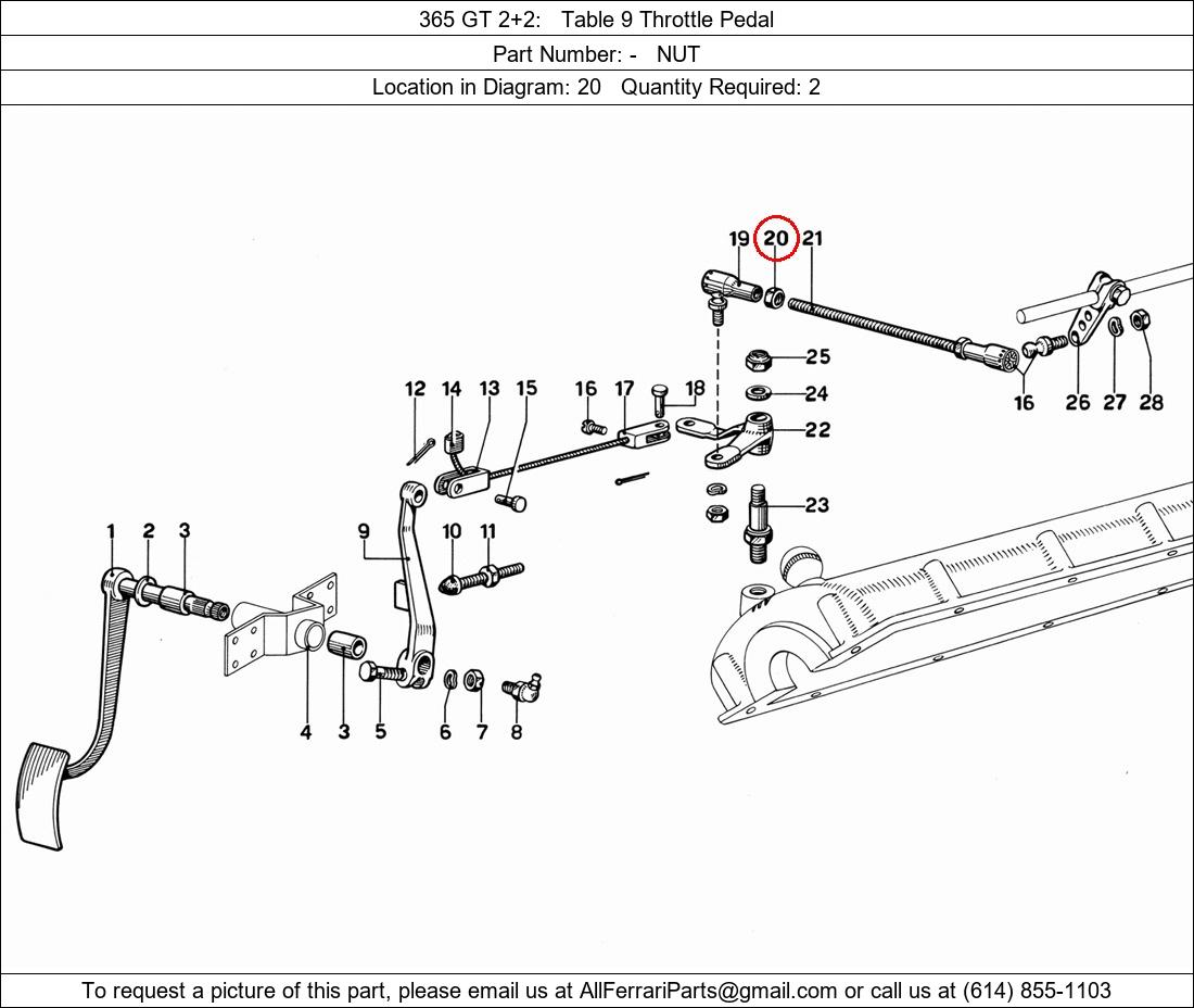 Ferrari Part Number -, NUT shown here as used in 365 GT 2+2 Table 9 Throttle Pedal. Location in Diagram: 20. Required Quantity: 2