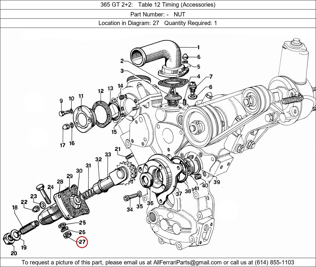 Ferrari Part Number -, NUT shown here as used in 365 GT 2+2 Table 12 Timing (Accessories). Location in Diagram: 27. Required Quantity: 1