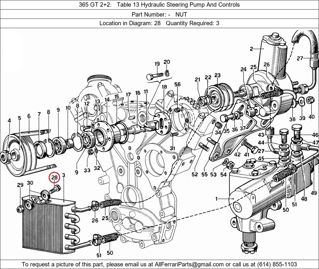 Ferrari Part Number -, NUT shown here as used in 365 GT 2+2 Table 13 Hydraulic Steering Pump And Controls. Location in Diagram: 28. Required Quantity: 3