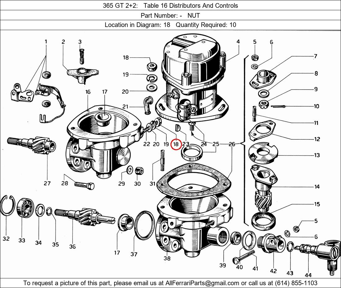 Ferrari Part Number -, NUT shown here as used in 365 GT 2+2 Table 16 Distributors And Controls. Location in Diagram: 18. Required Quantity: 10