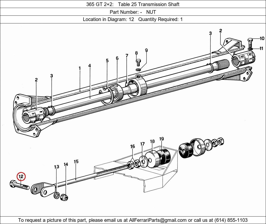 Ferrari Part Number -, NUT shown here as used in 365 GT 2+2 Table 25 Transmission Shaft. Location in Diagram: 12. Required Quantity: 1