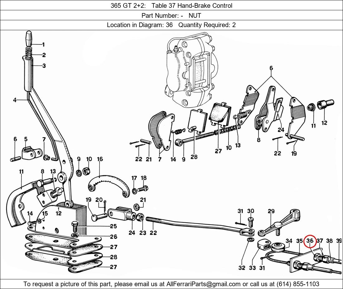 Ferrari Part Number -, NUT shown here as used in 365 GT 2+2 Table 37 Hand-Brake Control. Location in Diagram: 36. Required Quantity: 2