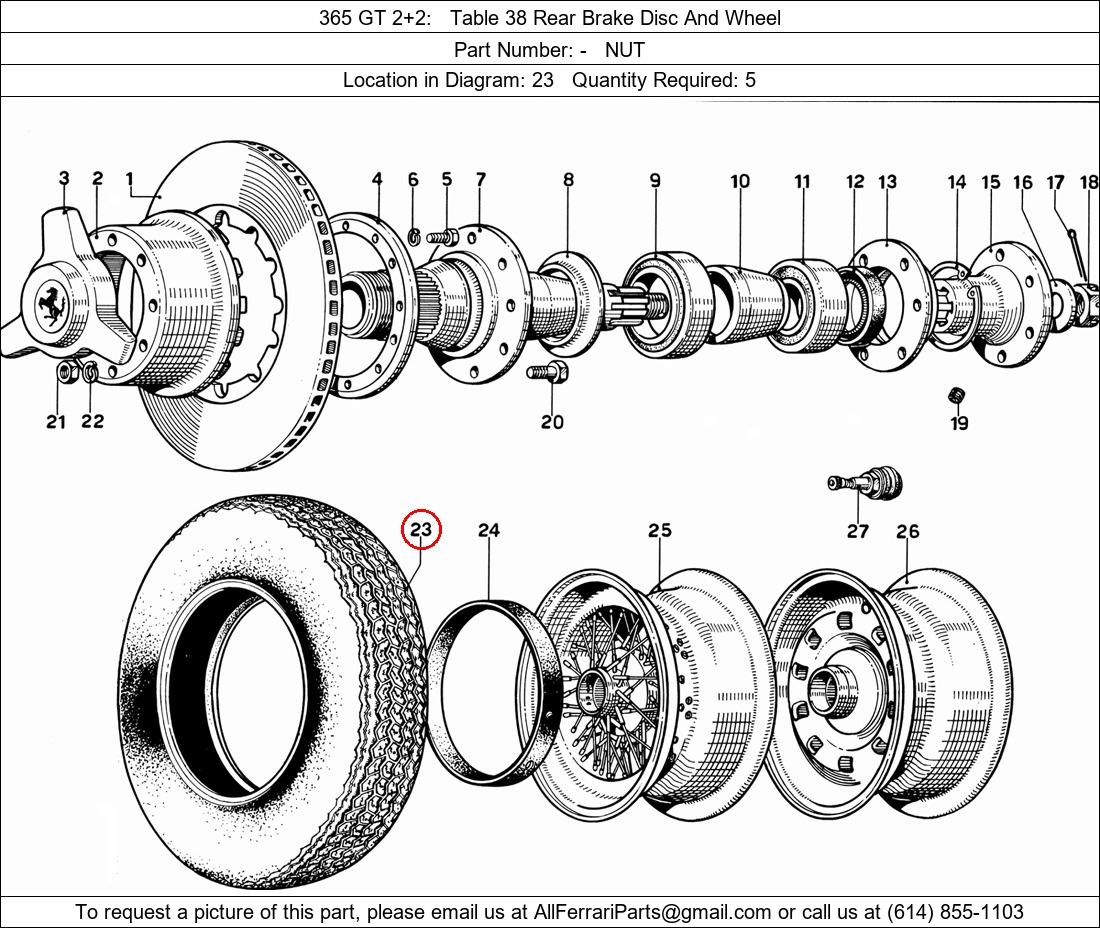Ferrari Part Number -, NUT shown here as used in 365 GT 2+2 Table 38 Rear Brake Disc And Wheel. Location in Diagram: 23. Required Quantity: 5