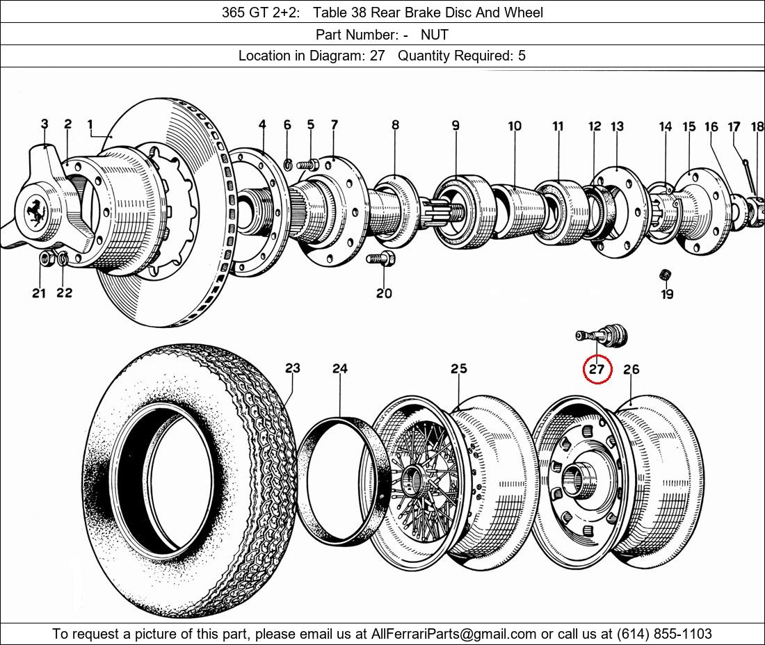 Ferrari Part Number -, NUT shown here as used in 365 GT 2+2 Table 38 Rear Brake Disc And Wheel. Location in Diagram: 27. Required Quantity: 5