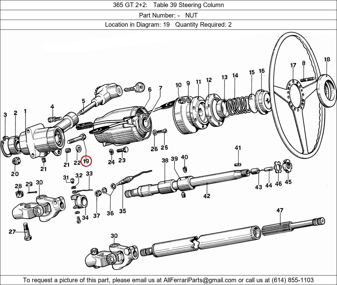 Ferrari Part Number -, NUT shown here as used in 365 GT 2+2 Table 39 Steering Column. Location in Diagram: 19. Required Quantity: 2