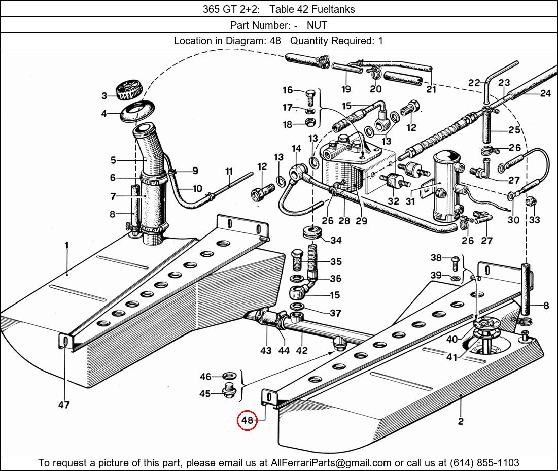 Ferrari Part Number -, NUT shown here as used in 365 GT 2+2 Table 42 Fueltanks. Location in Diagram: 48. Required Quantity: 1