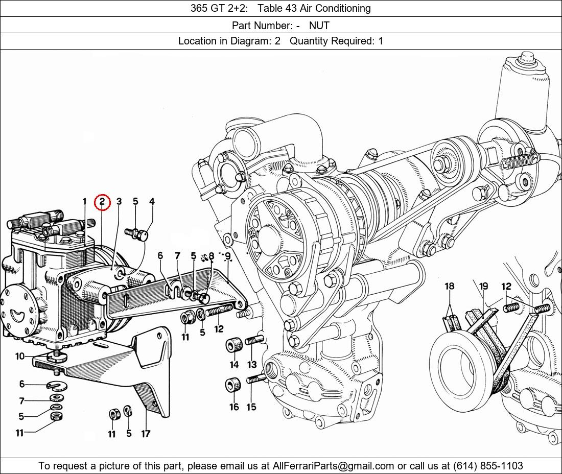 Ferrari Part Number -, NUT shown here as used in 365 GT 2+2 Table 43 Air Conditioning. Location in Diagram: 2. Required Quantity: 1