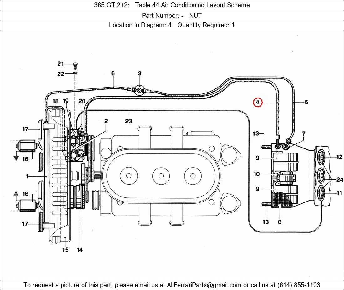 Ferrari Part Number -, NUT shown here as used in 365 GT 2+2 Table 44 Air Conditioning Layout Scheme. Location in Diagram: 4. Required Quantity: 1