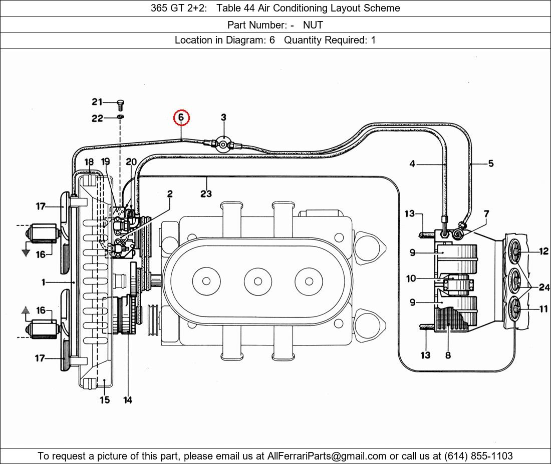 Ferrari Part Number -, NUT shown here as used in 365 GT 2+2 Table 44 Air Conditioning Layout Scheme. Location in Diagram: 6. Required Quantity: 1