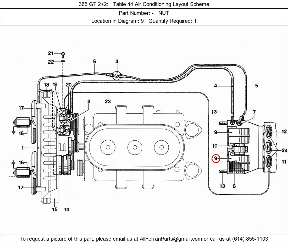 Ferrari Part Number -, NUT shown here as used in 365 GT 2+2 Table 44 Air Conditioning Layout Scheme. Location in Diagram: 9. Required Quantity: 1