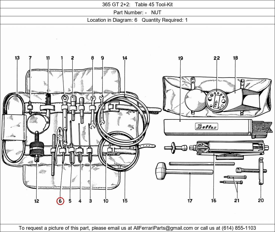 Ferrari Part Number -, NUT shown here as used in 365 GT 2+2 Table 45 Tool-Kit. Location in Diagram: 6. Required Quantity: 1