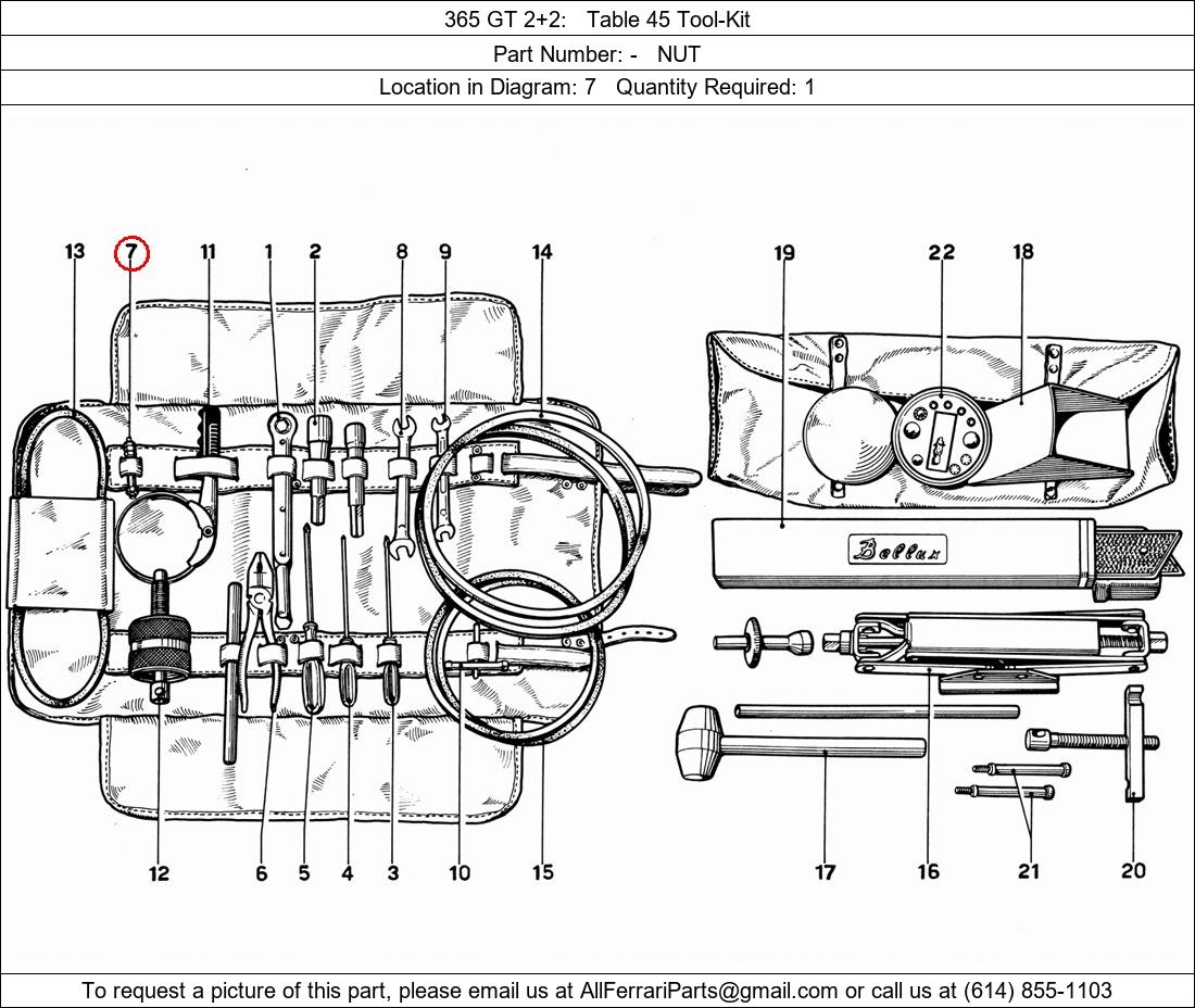 Ferrari Part Number -, NUT shown here as used in 365 GT 2+2 Table 45 Tool-Kit. Location in Diagram: 7. Required Quantity: 1