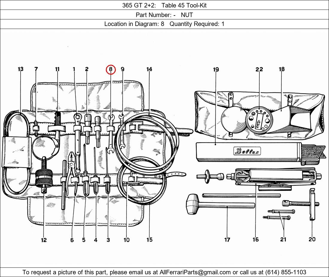 Ferrari Part Number -, NUT shown here as used in 365 GT 2+2 Table 45 Tool-Kit. Location in Diagram: 8. Required Quantity: 1