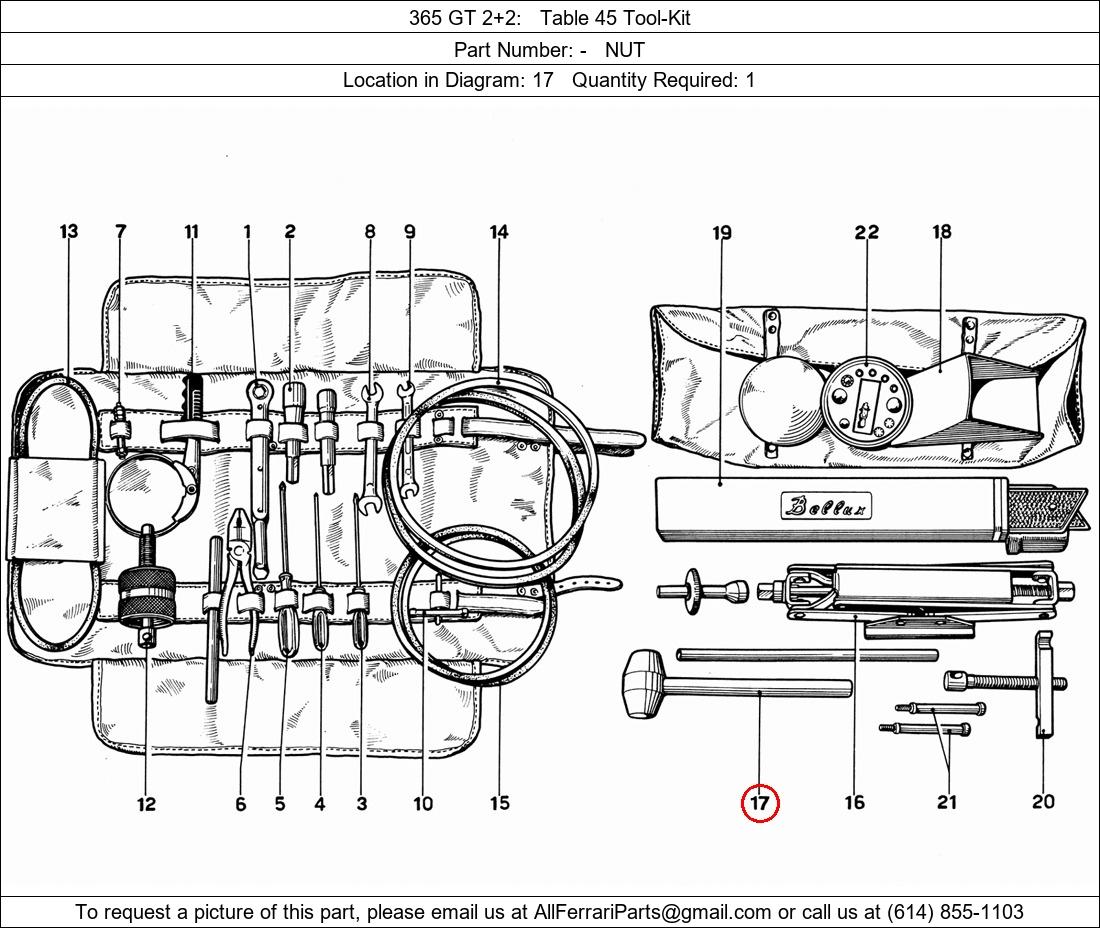 Ferrari Part Number -, NUT shown here as used in 365 GT 2+2 Table 45 Tool-Kit. Location in Diagram: 17. Required Quantity: 1