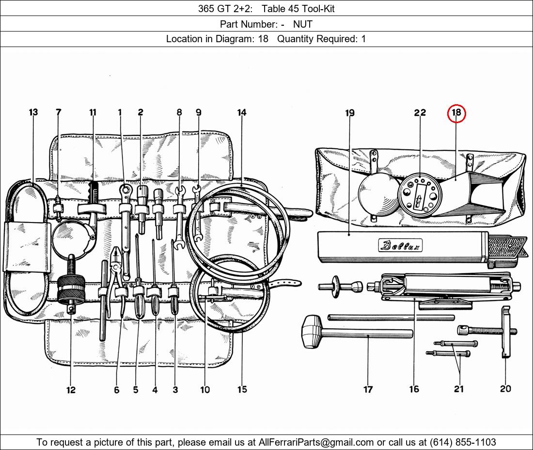 Ferrari Part Number -, NUT shown here as used in 365 GT 2+2 Table 45 Tool-Kit. Location in Diagram: 18. Required Quantity: 1
