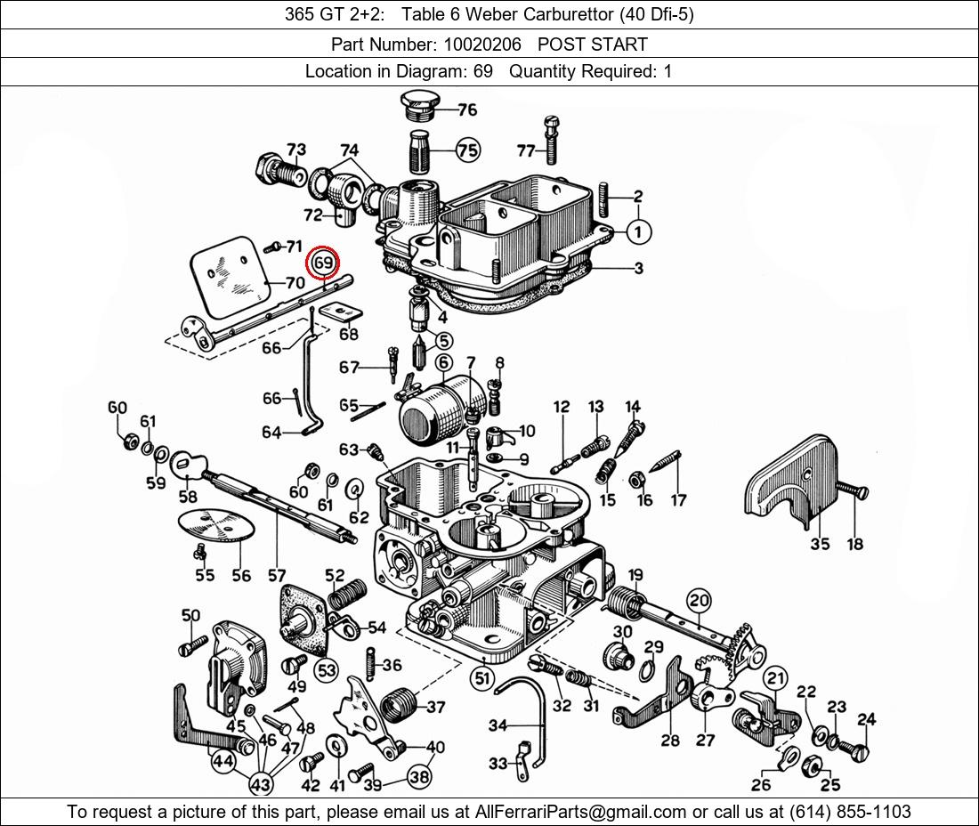 Ferrari Part Number 10020206, POST START shown here as used in 365 GT 2+2 Table 6 Weber Carburettor (40 Dfi-5). Location in Diagram: 69. Required Quantity: 1