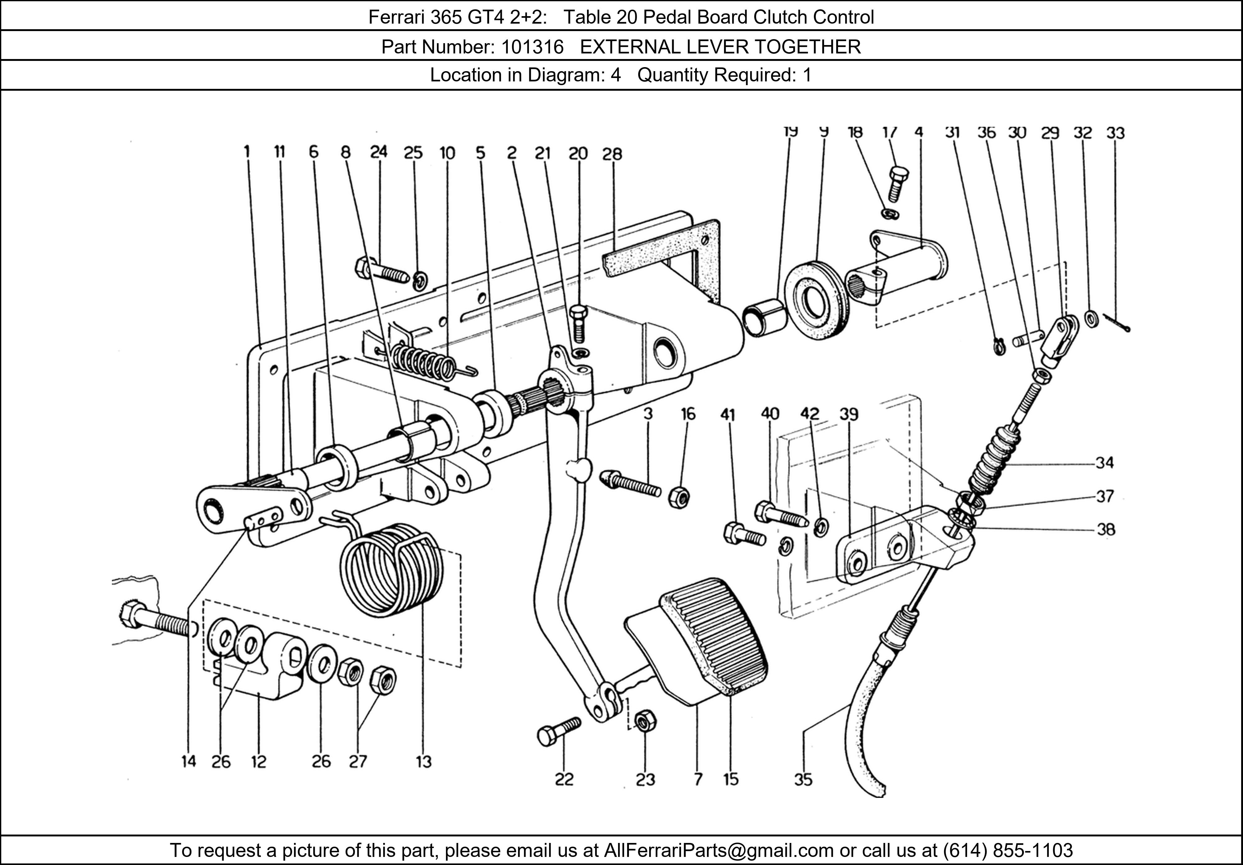 Ferrari Part 101316, EXTERNAL LEVER TOGETHER, shown here as used in Ferrari 365 GT4 2+2 Table 20 Pedal Board Clutch Control.
