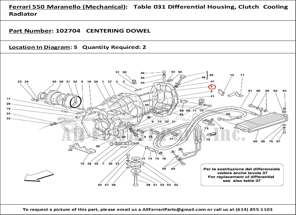 | Ferrari 550 Maranello | Table 031 Differential Housing, Clutch Cooling Radiator (005) |