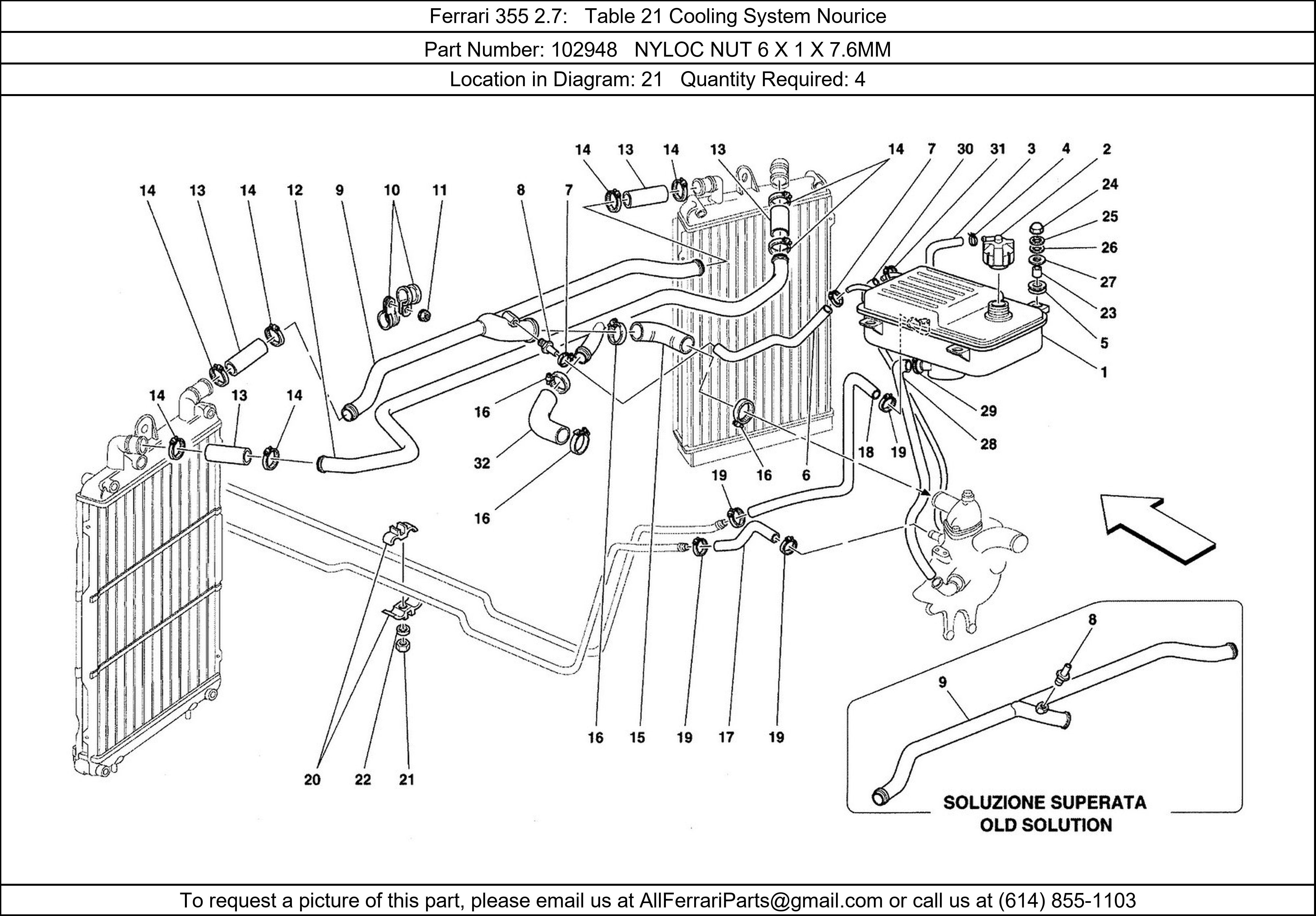 Ferrari Part Number 102948 in Ferrari 355 2.7 Table 21 Cooling System Nourice