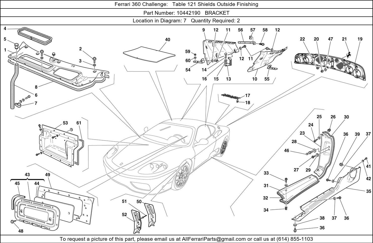 Ferrari Part Number 10442190 in Ferrari 360 Challenge Table 121 Shields Outside Finishing
