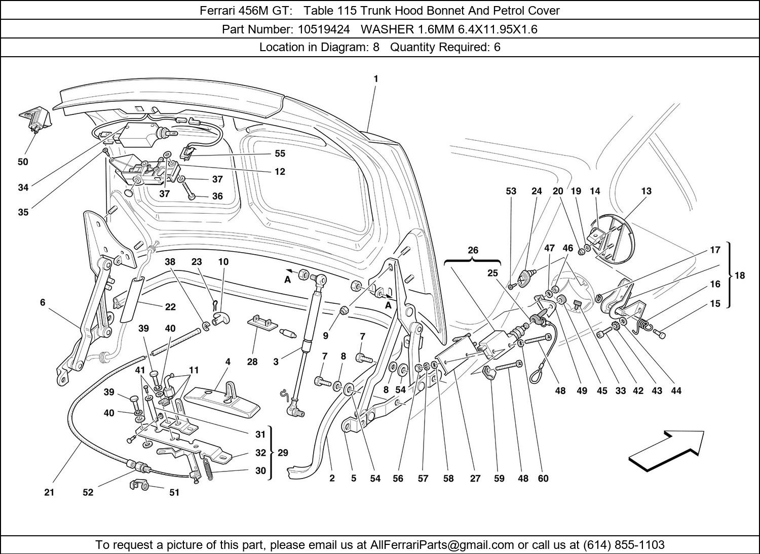 Ferrari Part Number 10519424 in Ferrari 456M GT Table 115 Trunk Hood Bonnet And Petrol Cover