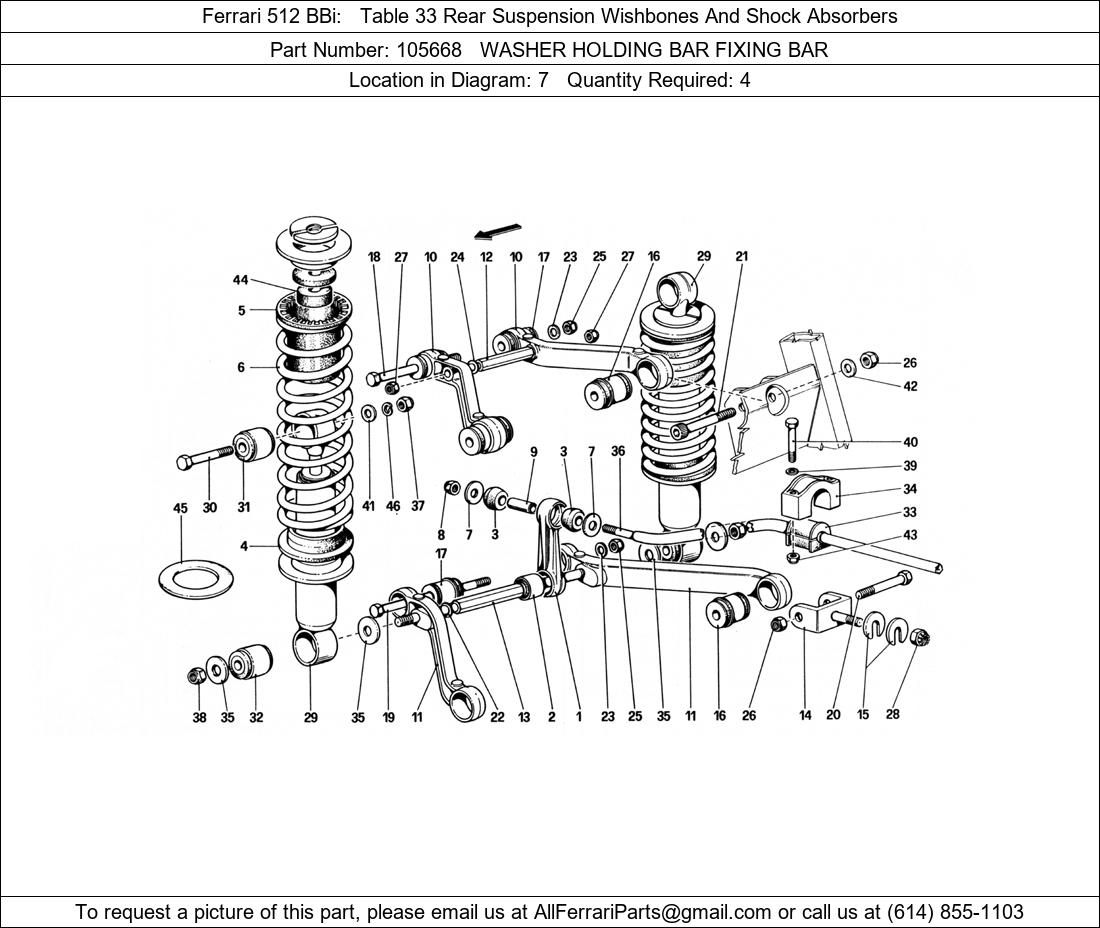 Ferrari Part Number 105668 in Ferrari 512 BBi Table 33 Rear Suspension Wishbones And Shock Absorbers
