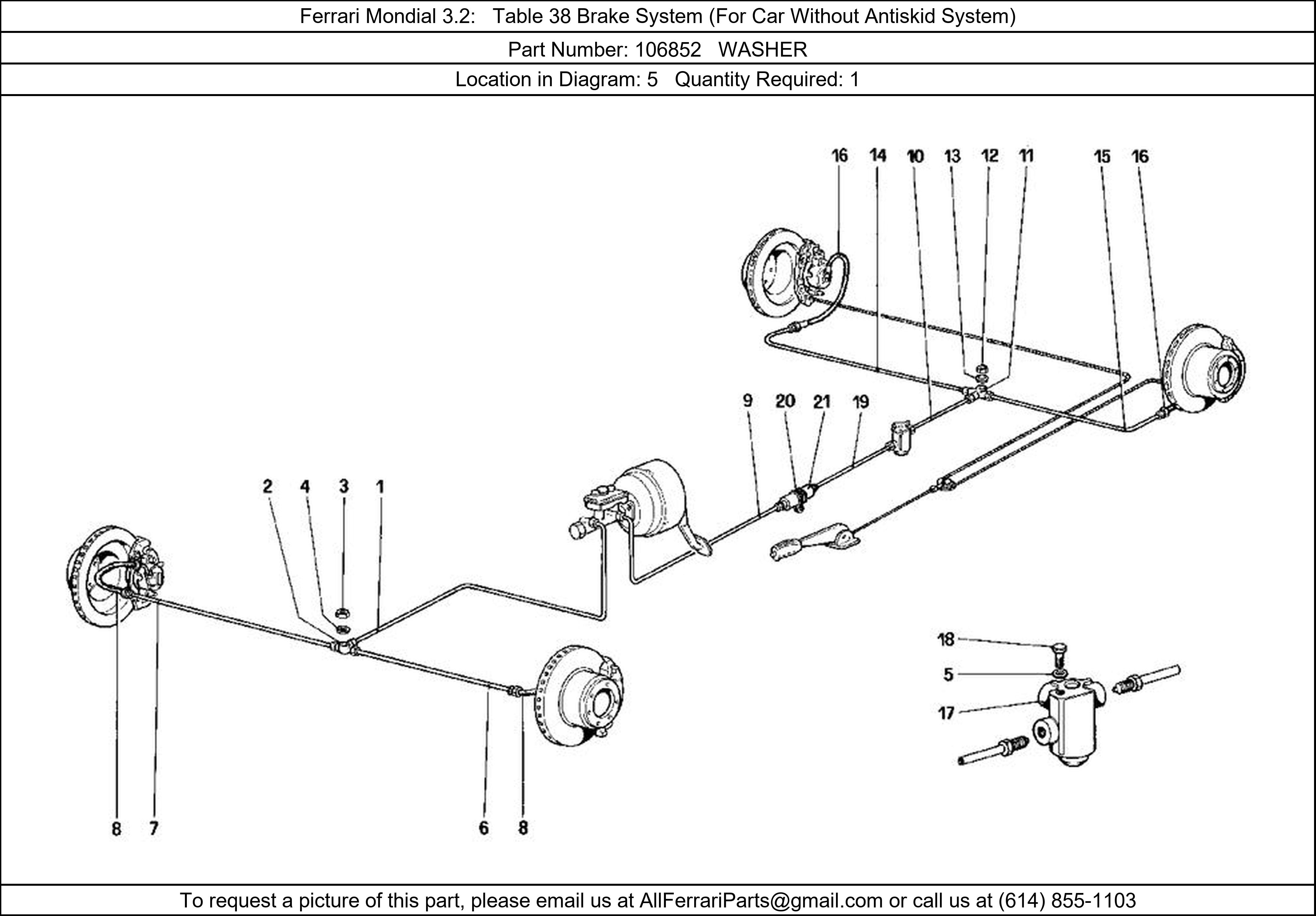 Ferrari Part 106852, WASHER, shown here as used in Ferrari Mondial 3.2 Table 38 Brake System (For Car Without Antiskid System). Other uses of this part are shown below: