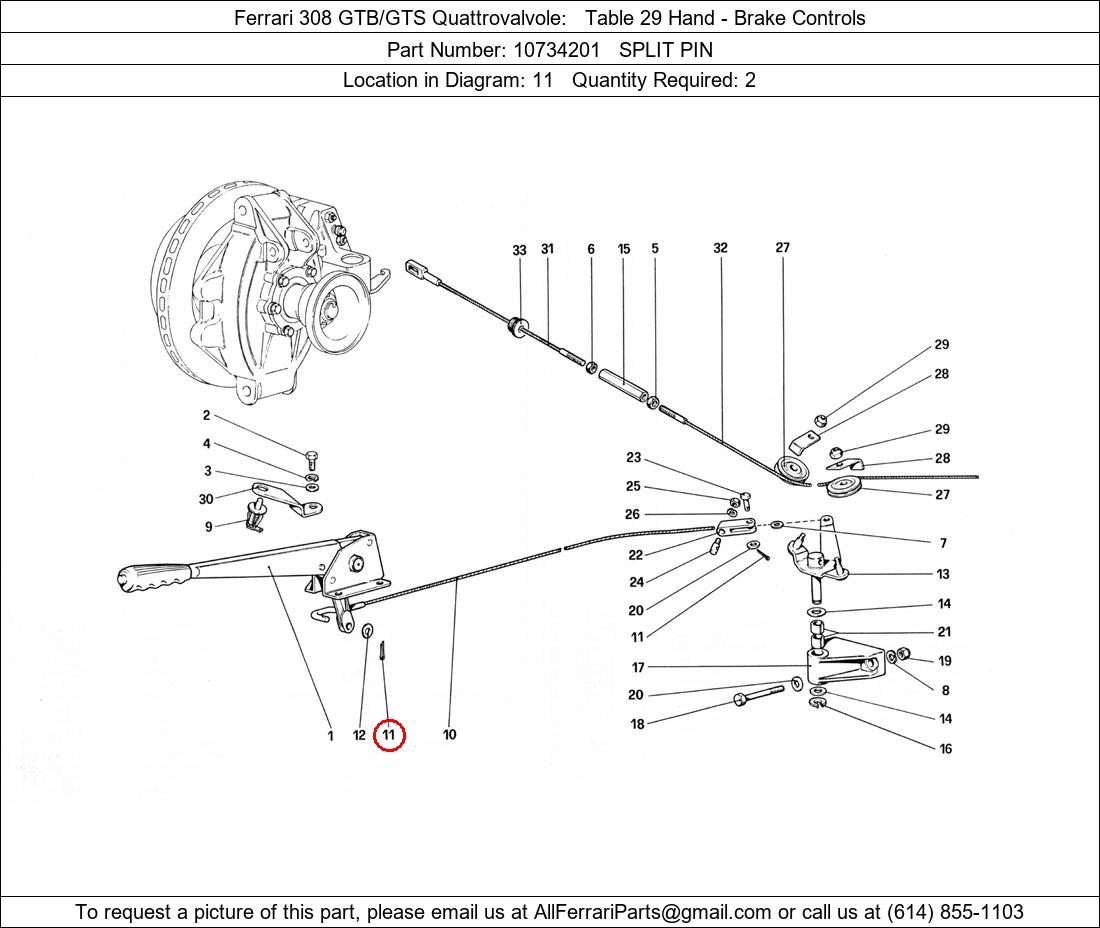 Ferrari Part Number 10734201, SPLIT PIN shown here as used in Ferrari 308 GTB/GTS Quattrovalvole Table 29 Hand - Brake Controls. Location in Diagram: 11. Required Quantity: 2. This Ferrari part is used in more than one diagram. Click on the diagrams below to see alternative uses of this part: