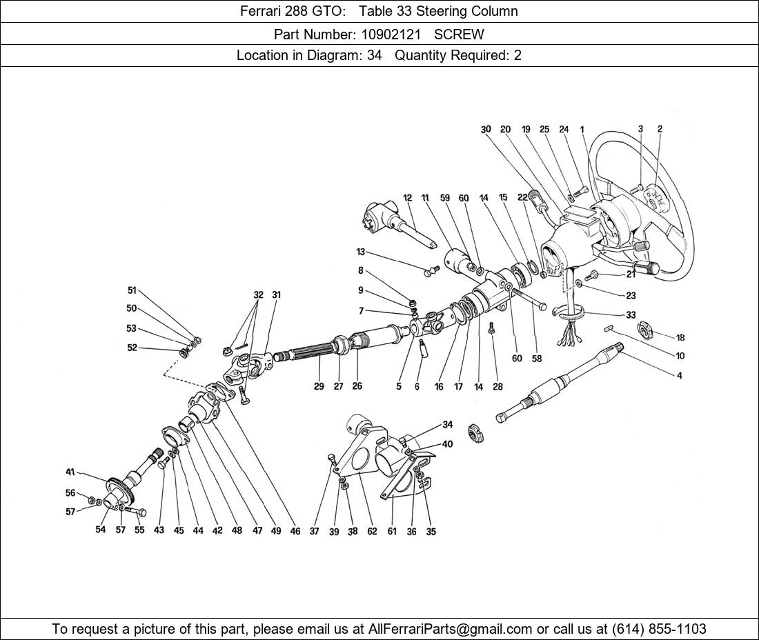 Ferrari Part 10902121, SCREW, shown here as used in Ferrari 288 GTO Table 33 Steering Column. Other uses of this part are shown below: