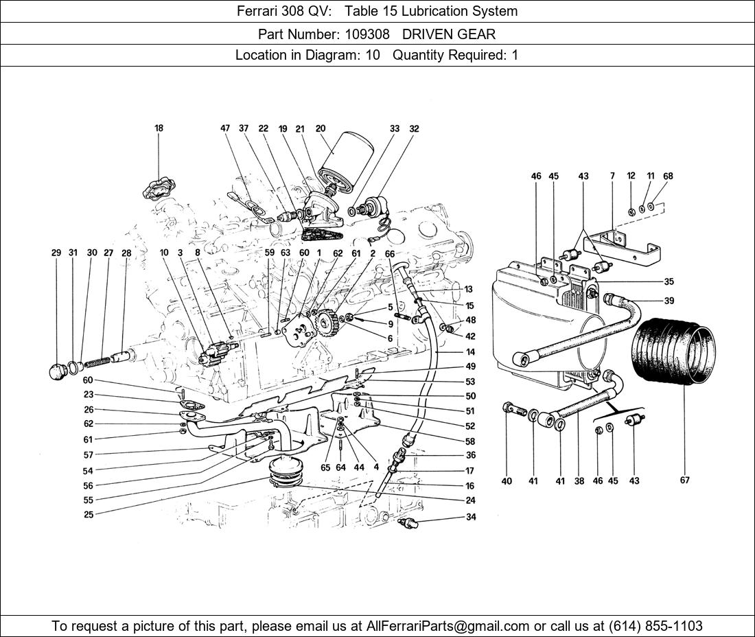 Ferrari Part 109308, DRIVEN GEAR, shown here as used in Ferrari 308 QV Table 15 Lubrication System. Other uses of this part are shown below: