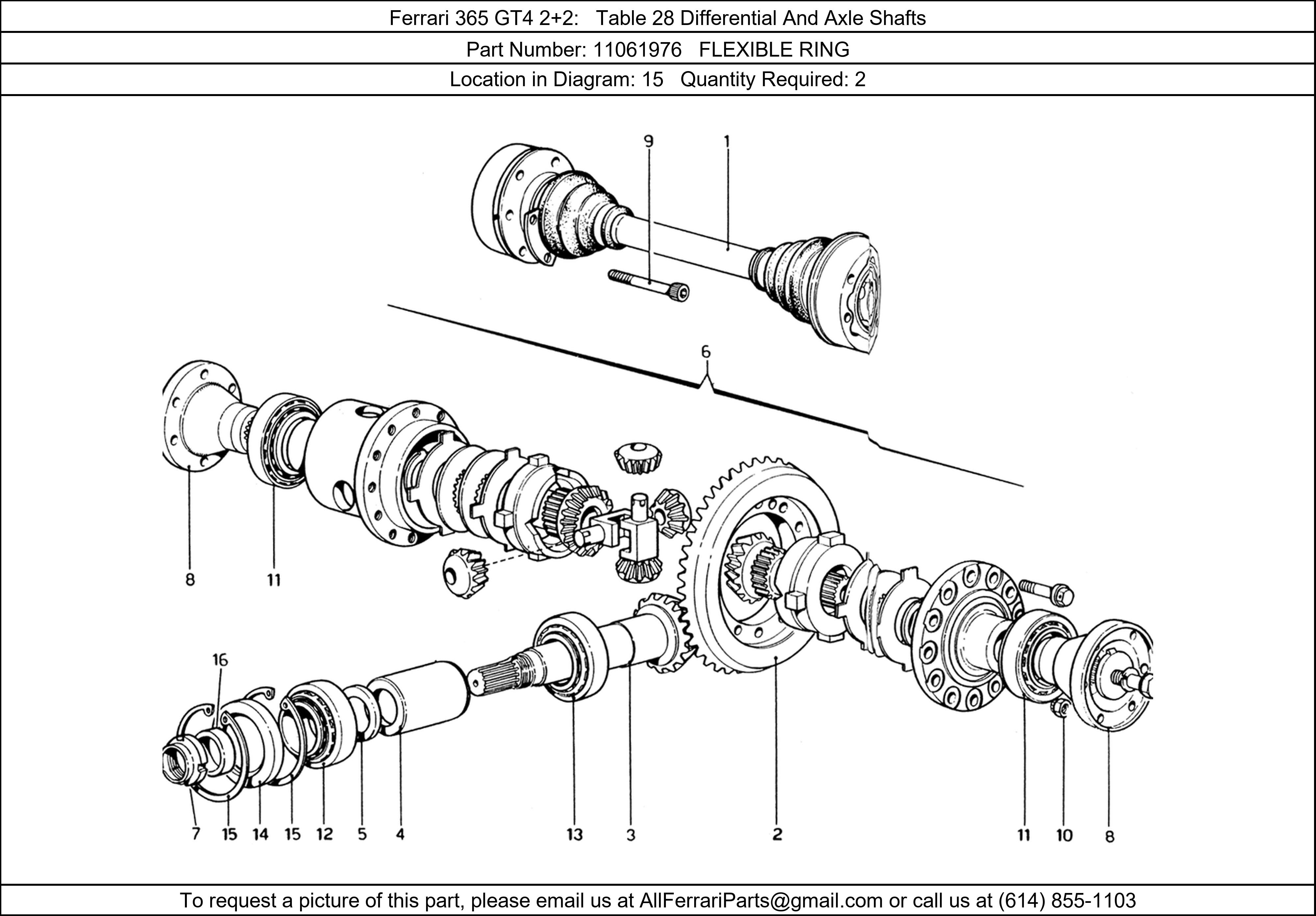 Ferrari Part 11061976, FLEXIBLE RING, shown here as used in Ferrari 365 GT4 2+2 Table 28 Differential And Axle Shafts. Other uses of this part are shown below: