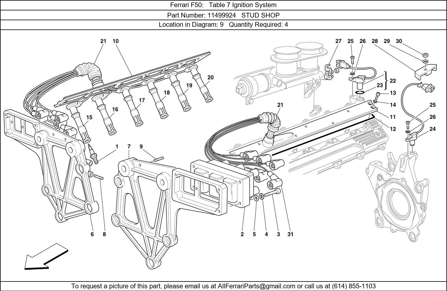 Ferrari Part 11499924, STUD SHOP, shown here as used in Ferrari F50 Table 7 Ignition System. Other uses of this part are shown below: