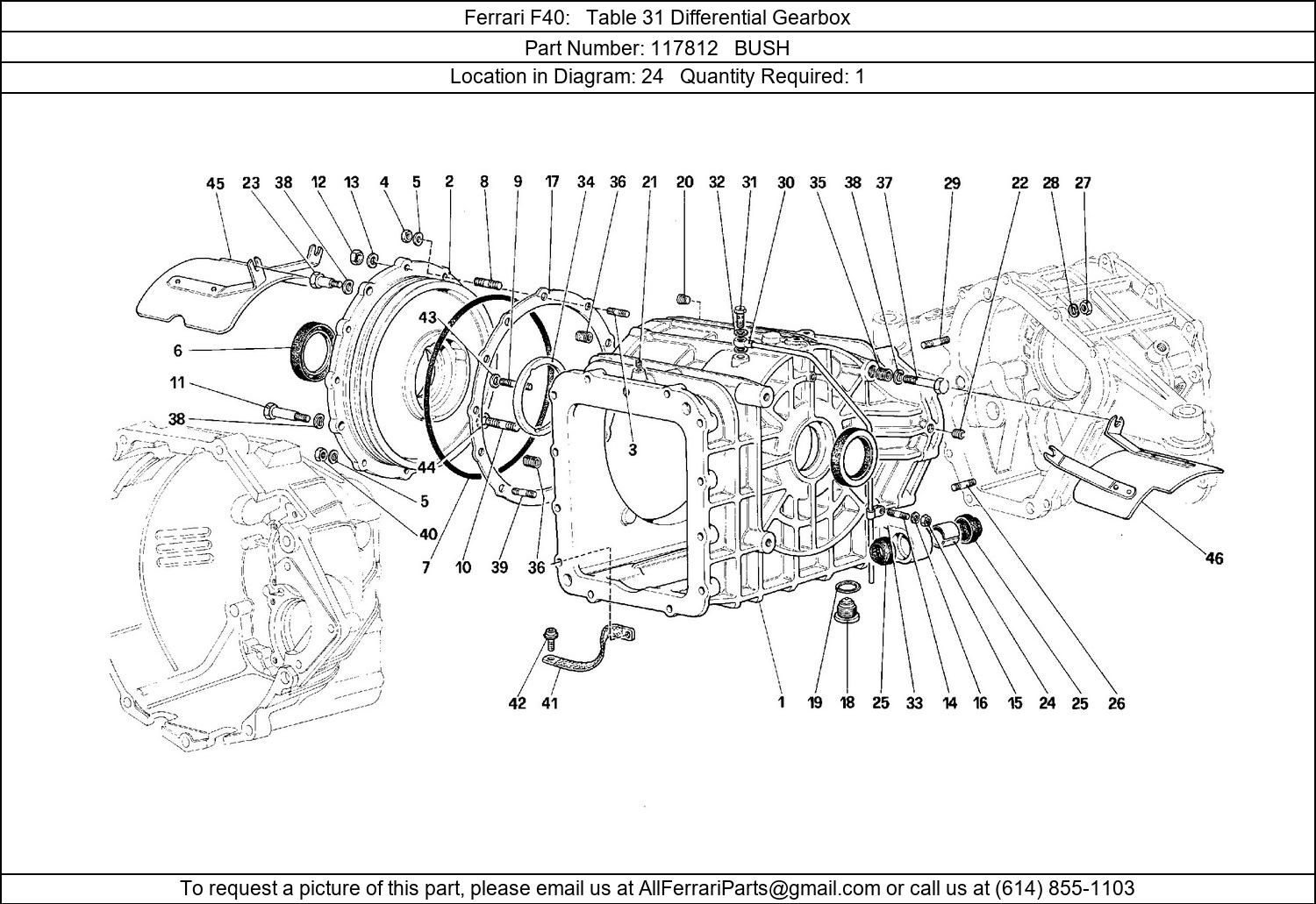 Ferrari Part 117812, BUSH, shown here as used in Ferrari F40 Table 31 Differential Gearbox. Other uses of this part are shown below: