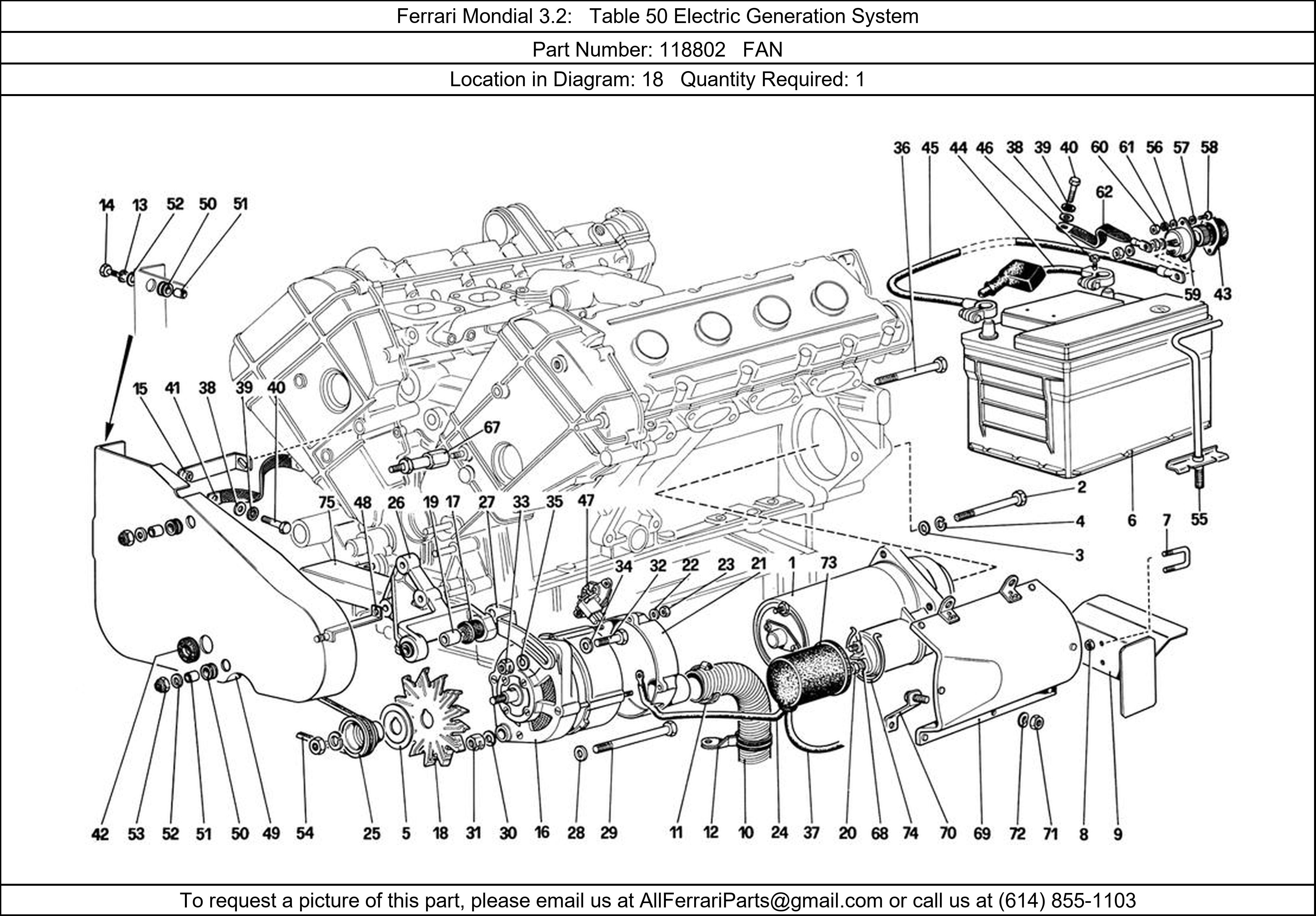 Ferrari Part 118802, FAN, shown here as used in Ferrari Mondial 3.2 Table 50 Electric Generation System. Other uses of this part are shown below: