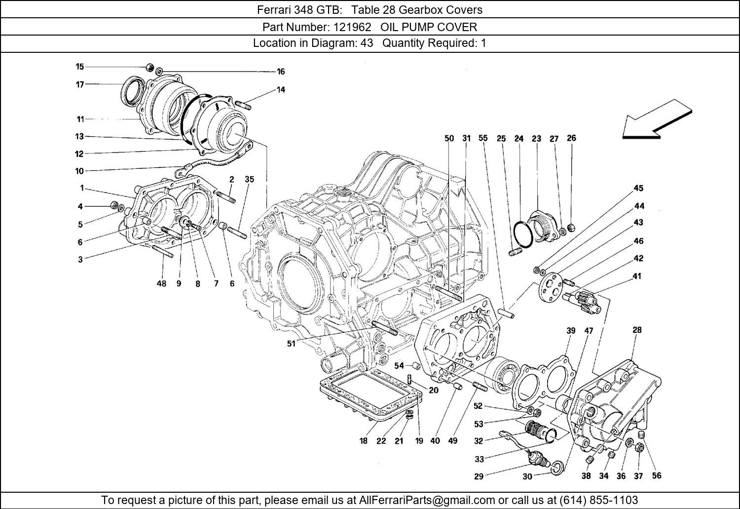 Ferrari Part 121962, OIL PUMP COVER, shown here as used in Ferrari 348 GTB Table 28 Gearbox Covers. Other uses of this part are shown below:
