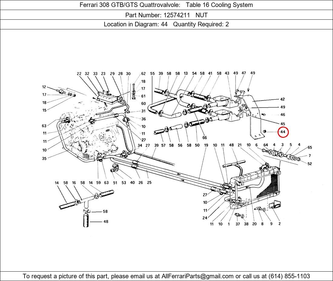 Ferrari Part Number 12574211, NUT shown here as used in Ferrari 308 GTB/GTS Quattrovalvole Table 16 Cooling System. Location in Diagram: 44. Required Quantity: 2. This Ferrari part is used in more than one diagram. Click on the diagrams below to see alternative uses of this part: