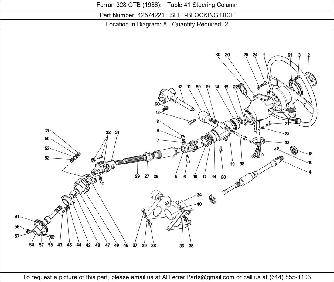 Ferrari Part 12574221, SELF-BLOCKING DICE, shown here as used in Ferrari 328 GTB (1988) Table 41 Steering Column. Other uses of this part are shown below: